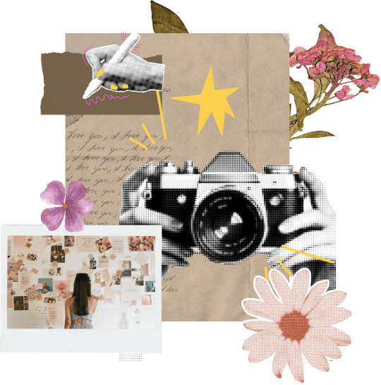 Este curso te invita a crear con recortes, texturas, colores y fotografías personales. Vas a trabajar con lo visual como puente simbólico hacia lo emocional.